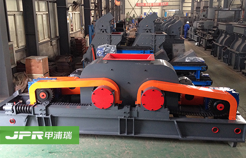 該系列重型對輥式破碎機,主要由輥輪、輥輪支撐軸承、壓緊和調節裝置以及驅動裝置等部分組 成。出料粒度的調節:兩輥輪之間裝有楔形或墊片調節裝置,楔形裝置的頂端裝有調整螺栓,當調整螺栓將楔塊向上拉起時,楔塊將活動輥輪頂離固定輪。重型對輥 式破碎機將破碎物料經給料口落入兩輥子之間,進行擠壓破碎,成品物料自然落下。遇有過硬或不可破碎物時,重型對輥式破碎機的輥子可憑液壓缸或彈簧的作用自 動退讓,使輥子間隙增大,過硬或不可破碎物落下,從而保護機器不受損壞。相向轉動的兩輥子有一定的間隙,改變間隙,即可控制產品大排料粒度。