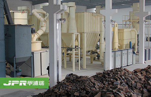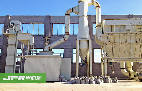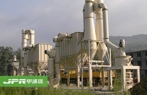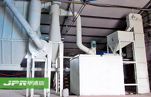 物料經顎式破碎機破碎后,由斗式提升機送至儲料倉,通過電磁振動給料機把物料均勻連續地送到主機進行研磨,研磨后的粉末在鼓風機的作用下吹向選粉機進行分 選,分選后的細粉由管道送至儲料倉,后經出料閥輸出即為成品。整套生產線工作過程中氣壓為負,首先鼓風機吹出的空氣伴隨著細粉經管道進入儲料倉上部的旋 風收集器內,由回風管道返回鼓風機,形成空氣循環利用。其次,集粉器下端裝有鎖粉器,其作用是將外界正壓氣體與集粉器負壓氣體隔離開,大大提高了產量。再 次,主機底部殘留的空氣和粉塵通過管道被送到布袋除塵器進行過濾,粉塵等雜質被布袋除塵器吸附,有效地保護了環境。